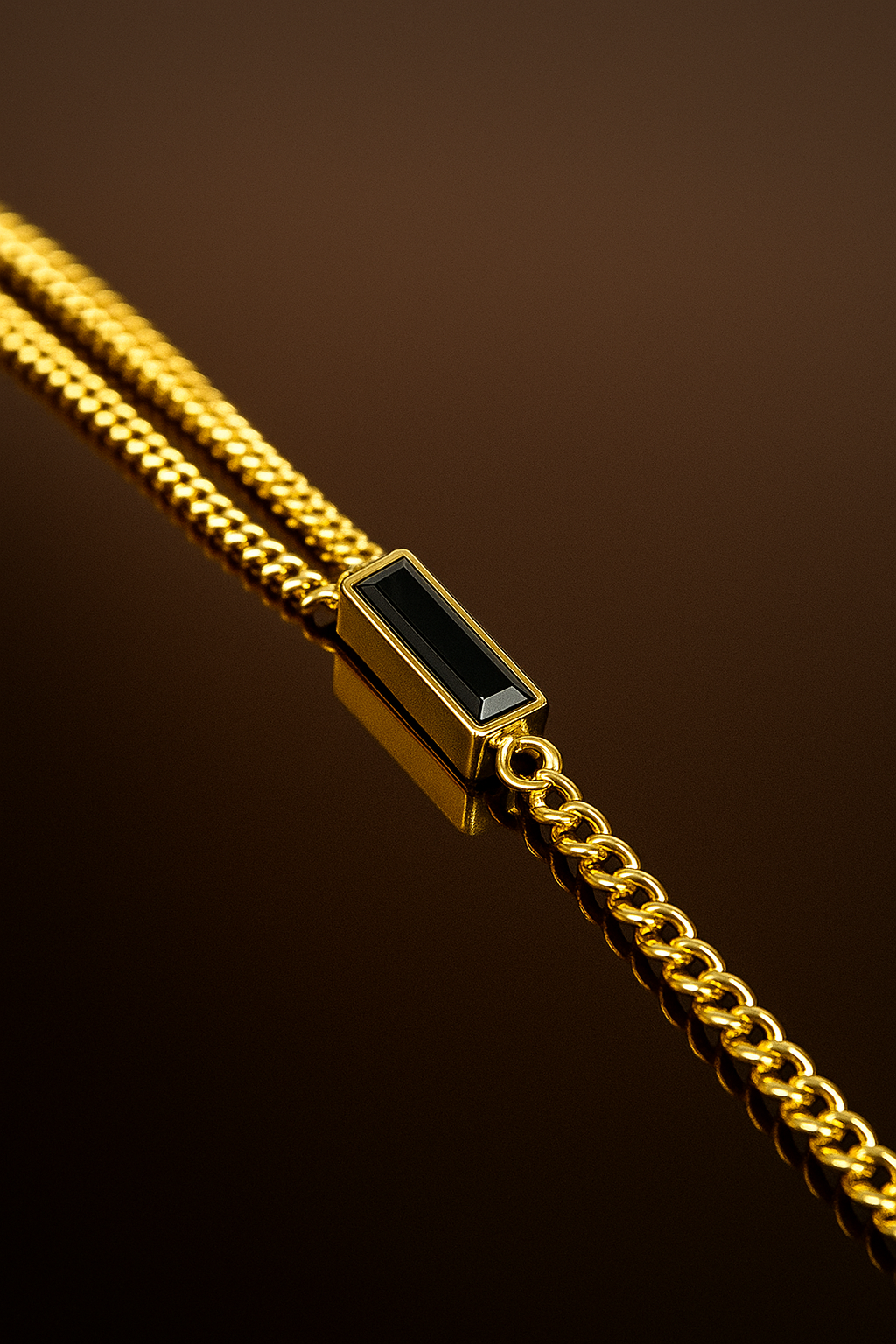 Modern Elegance Gold Bracelet with Black Rectangular Stone